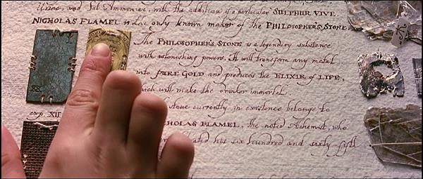 “The Philosopherˈs Stone is a legendary substance with astonishing powers. It will transform any metal into pure gold and produces the Elixir of Life which will make the drinker immortal […] The only Stone currently in existence belongs to Mr. Nicolas Flamel, the noted alchemist who last year celebrated his 665th birthday.”